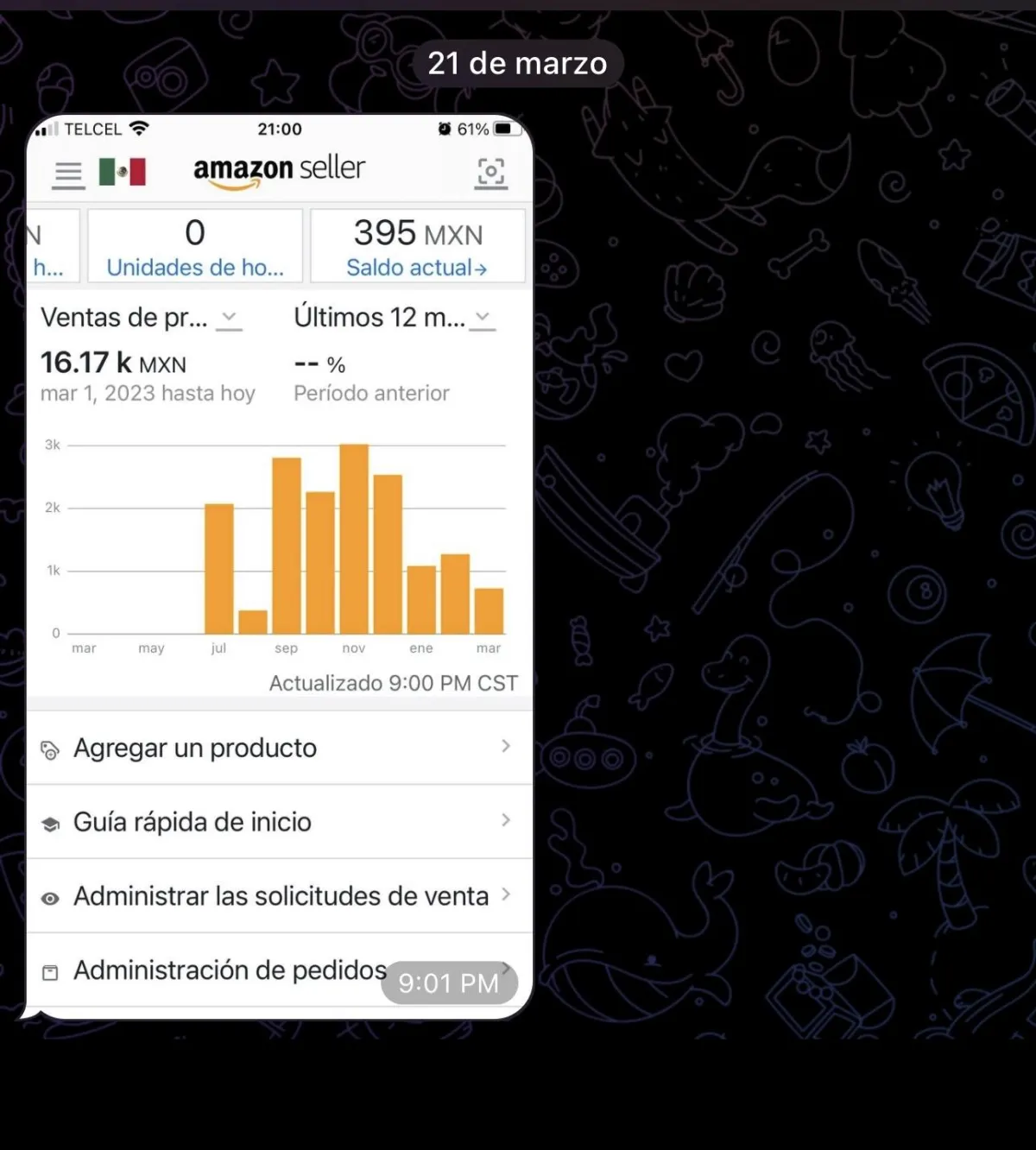 Aldo inició desde 0 sin nunca haber vendido en internet ni mucho menos en Amazon. En su primer mes ya vendió 16K y continua con el aprendizaje y testeo de nuevos productos.