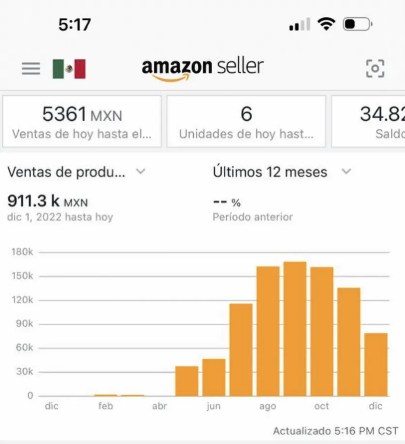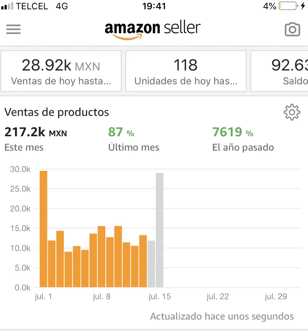 Para vender +136k a la semana, no es de la noche a la mañana. Juan Carlos lleva más de 1 año vendiendo en Amazon y entendió el juego. Actualmente tiene varios productos posicionados y sigue probando nuevos para incrementar su facturación mensual.